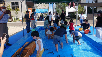 鮎の掴み取り